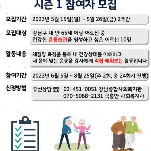 어르신을 위한 소그룹 운동코칭프로그램 노(老)-하우(How) 시즌1 참여자 모집