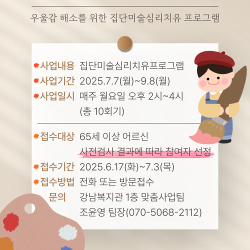 어르신 집단미술심리치유프로그램 '행복+' 참여자모집