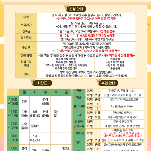 하반기 강남노인평생교육프로그램 참여자 모집