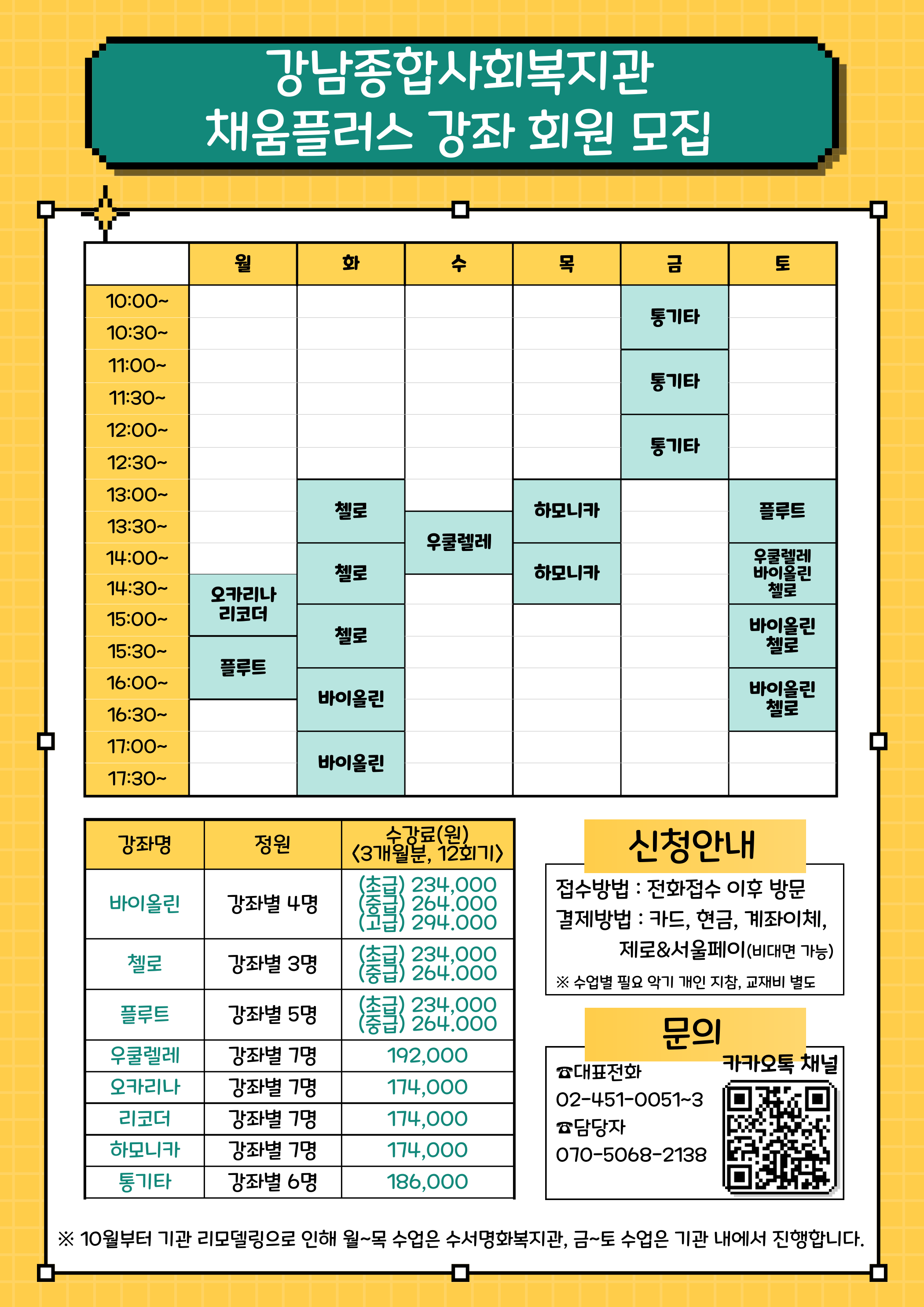 4) 수강료 : 강좌별, 난이도별로 금액이 상이함. 홍보지 참조